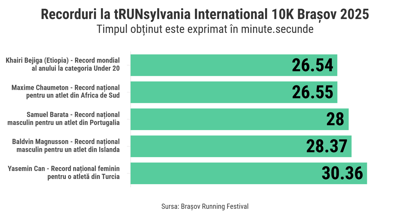 În schimb, Brașov Running Festival a reușit să surclaseze competiții precum semimaratoanele organizate în Barcelona, Lille, Houston sau Ras Al Khaimah (Emiratele Arabe Unite), dar și o competiție de 10 kilometri de la Tokyo.